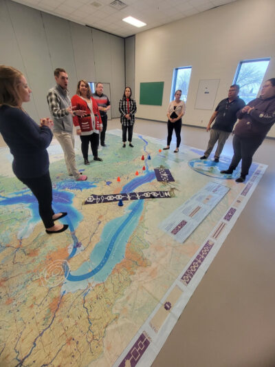 Conscient de cette lacune, le conseil d’administration du CDSBEO renforce l’éducation sur les ceintures Wampum, des ceintures perlées cérémonielles indigènes représentant les traités historiques, les lois et les règles sociétales transmises de génération en génération. L’enseignement portera notamment sur le wampum à deux rangs, le plat à une cuillère, le wampum Hiawatha et le wampum à deux loups. Toutes les écoles primaires recevront également la carte géante de Biinaagami de Canadian Geographic. Cet outil pédagogique relie le bassin versant aux enseignements et aux modes de connaissance indigènes par le biais de récits en réalité augmentée. Bien au-delà de la géographie, ces cartes donnent vie à des enseignements sur les traités, la langue, l’eau et la terre, tous partagés par les voix des aînés et des gardiens du savoir.